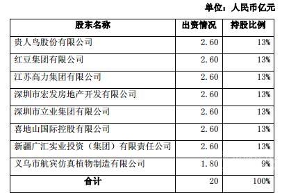 【-l品牌动态】昨日晚间讯,发出公告,称公司拟与新疆广汇实业投资(集团)有限责任公司、红豆集团有限公司等7家公司共同发起设立安康人寿保险股份有限公司。目前公司名称暂定,以最终注册为准。安康保险注册资本拟定为人民币20亿元,其中,贵人鸟拟以自有资金或合法自筹资金出资2.6亿元人民币,占安康保险股本总额的13%。