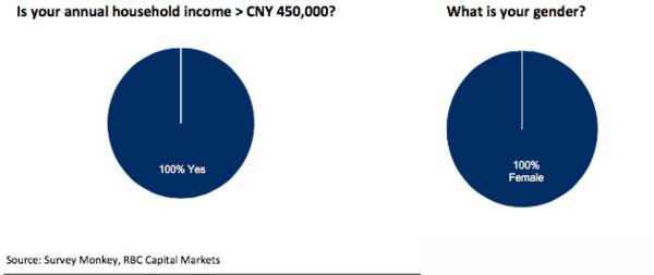 【-国际市场】加拿大皇家银行前一阵子发布了一个研究报告,主要调查中国高收入家庭的女性,都对各个品类——主要是指包袋、服装、鞋履——的哪些品牌充满兴趣。