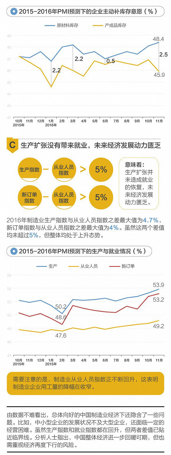 【-国内市场】2016年中国制造业PMI总体处于上升态势,这意味着中国制造业整体回暖。PMI的分类指数显示,中国经济的整体通胀水平在上升,大型企业的经营状况明显好于中小型企业。