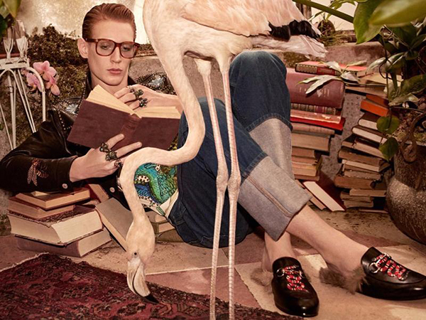 上周三(2月22日),Gucci在米兰结束了第一个男女装合并的时装秀“炼金师的秘境”。舞台布景及时装本身都呈现魔幻风格,鞋服配饰不乏Gucci创意总监Alessandro Michele惯用的动植物图腾。一系列夸张的设计,在秀场上养眼,在日常生活中却并不好驾驭;不过在性冷淡风盛行的时装秀场上,这种借鉴自17、18世纪的复古风格让人耳目一新。