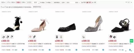 下面,我们做个实验,直接在天猫上搜索“百丽”和“Charles&Keith”,然后选择单鞋,最后大家选择,你的心动“女生”是哪位?