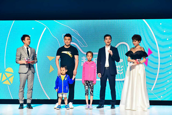 安踏儿童总经理林翔华(右2)与奥运冠军王皓(左二)分别携自己的孩子现场亲子互动