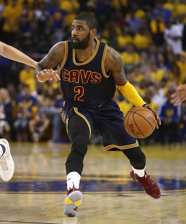 Kyrie Irving 第二场穿着的 Kyrie 3值得一提的是骑士队全员 15 人均为 NIKE 签约运动员, 全队穿着同一赞助商的球鞋登上总决赛舞台也是非常罕见的一件事。