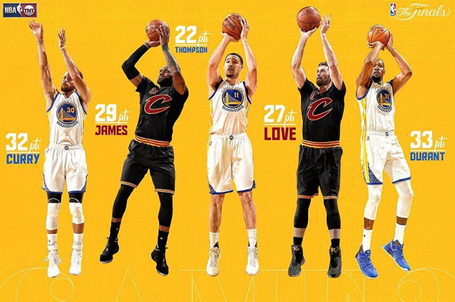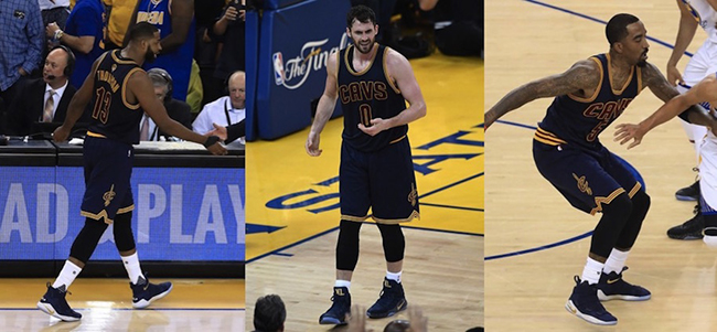 Tristan Thompson 与 JR.Smith 穿着的是 Zoom Soldier 11;Kevin Love 穿着的是 Hyperdunk 2016勇士队球星战靴