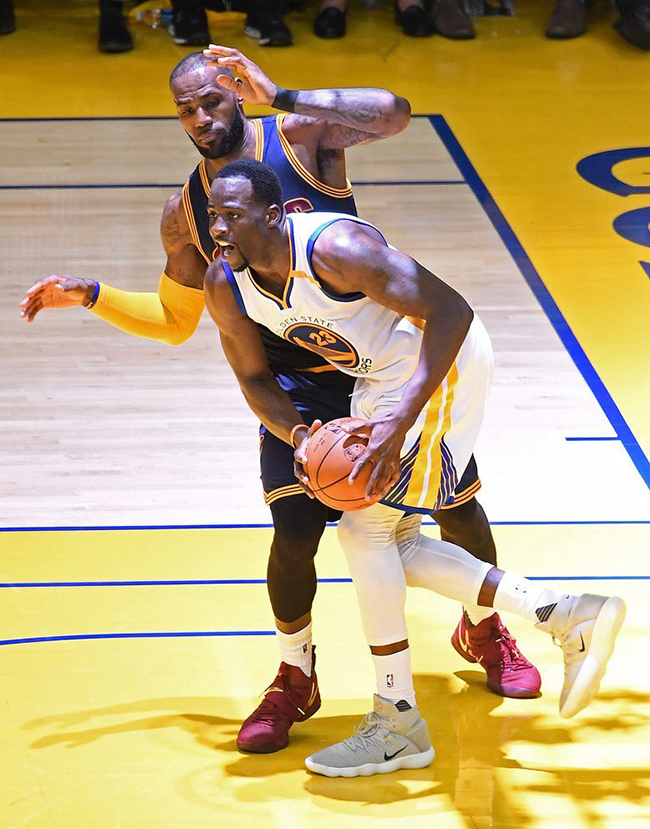 Draymond Green 穿着的是 React Hyperdunk 2017 Flyknit季后赛投篮手感不佳的 Klay Thompson 也在今日的第二场比赛中找到状态,22 分、7 篮板、1 助攻的表现成功复苏。为佛祖准备的 KT 2 总决赛配色也成功亮相篮球最高舞台,可以说是中国品牌的骄傲。