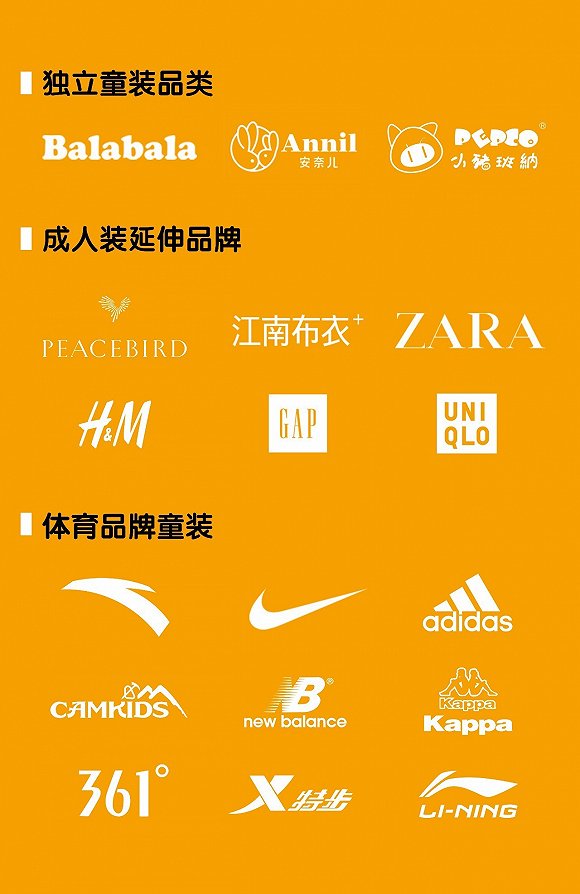 而与之相对应的,则是体育品牌对于童装领域的大规模涌入与独到的布局。在众多体育品牌中,安踏儿童是国内最早进入儿童领域的运动品牌,创立于2008年。2010年决定设立独立的的童装业务部门,面向5至12岁儿童的市场。2011年集团正式推出“特步童装”品牌,并于2012年成立专业运作该品牌的公司。不仅如此,、阿迪达斯也于近年开设儿童独立门店或在综合店内开出专业儿童区域。