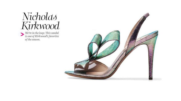 2012年维多利亚的秘密秀场上的模特们个个都美艳绝伦,而她们脚底踩着的一双双高跟鞋其实都出自于Nicholas Kirkwood之手。Nicholas Kirkwood的鞋履不止得艺术性的外表,还兼顾舒适性,品牌被全球最顶尖的精品百货店引进,价格约RMB 3000-5000左右,在伦敦著名百货店Liberty和Browns上市时,都迅速售罄。