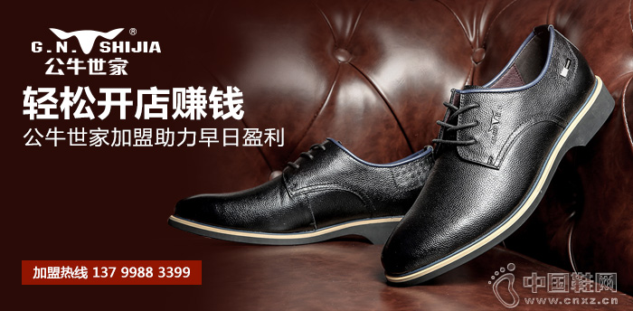 【-品牌动态】市场上的鞋店加盟连锁公司有很多,不只是几家那么简单。这些鞋店加盟公司在市场上有的很有影响力,有的只是刚刚起步。投资者在选择开一家鞋加盟店时,大多数都会倾向于选择有影响力的连锁公司,选择他们不仅给自己的加盟店带来开业上的帮助,还能加速自己正常运营的进程,实现早日盈利。鞋店加盟连锁公司怎么样?选择公牛世家时尚男鞋加盟,轻松开店赚钱!
