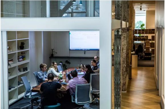 这天,旧金山总部的办公室挤满了人。办公室里有一间会议室建在楼梯上,此外还有一台专门用来冷藏玫瑰红葡萄酒的机器。每天下午 4 点,两位创始人都会召集全体员工一起做俯卧撑,他们把这叫做“4 点钟撑 40 下”。