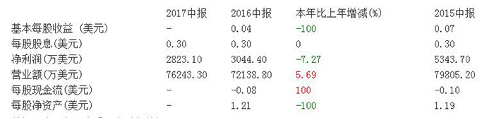 九兴控股:2017年中报净利2823.10万美元 同比减少7.27%