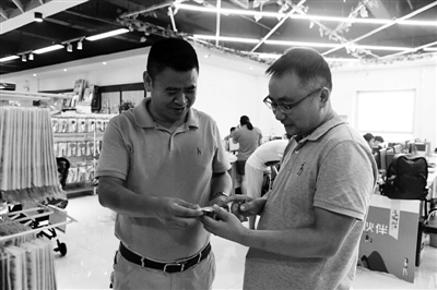 【-市场资讯】在国际商贸城五区三楼的货郎先生新总部,来自内蒙古的胡先生正在与货郎先生的市场部经理进行沟通和交流。胡先生目前已经开了五家货郎先生百货店,都获得了不错的效益。他告诉记者,选择加盟货郎先生正是看中了货郎先生商品种类多、性价比高、产品更新快以及加盟服务给力。