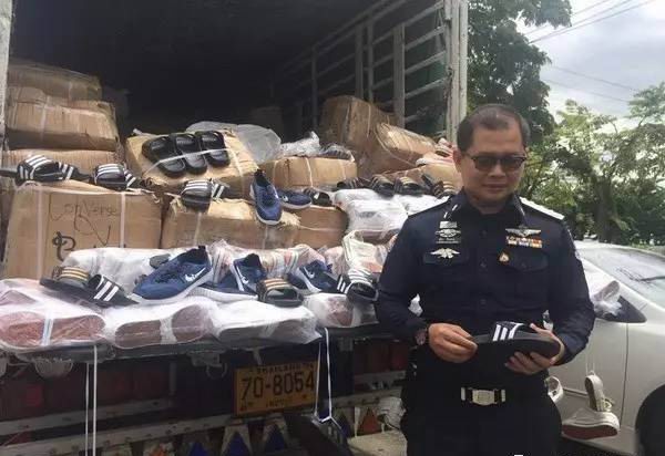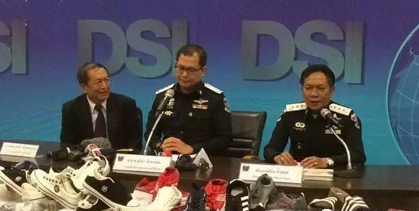 副厅长素里耶警中校21日上午发布新闻说,特案厅打击盗版案办事处于17日搜查曼谷6个地方,分别为曼谷三聘街4处,叻武拉纳1处和佛统府三攀县1处的货仓,并缴获走私入境和盗版的运动鞋共约16万双,总值逾2000万铢,包括、匡威及阿迪达斯等品牌,警方同时抓捕2名涉案中国人,1人名叫Hengbin Lin另1人名叫Lin Cao,两人进口走私运动鞋卖给外籍游客。