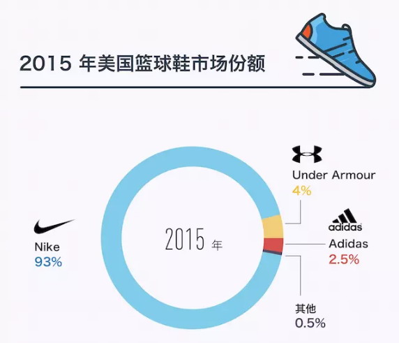 很多人始终认为耐克是难以超越的。这份报告同样显示,在两家最重要的美国市场,耐克的球鞋市场份额在 2014 年一度可以达到 60%,目前已削减至 44% 左右。尽管市场在 3 年内已经有了长足的增长,但这还是说明耐克没有在这一轮增长里取得上风。