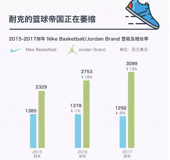 尽管 Jordan 的收入依然在增长,但增量正在放缓,这也是一个值得耐克警惕的信号。