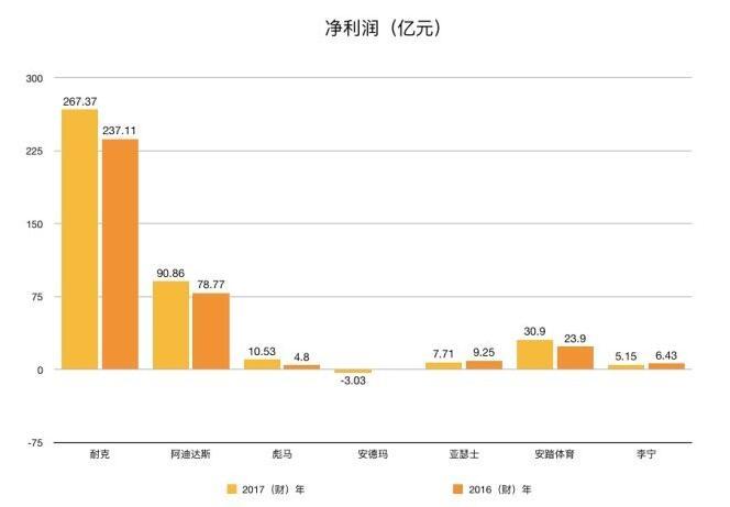 亚瑟士2017年(截至12月底)净销售额4001.57亿日元,2016年为3991.07亿日元。2017年营业利润195.71亿日元,2016年为254.72亿日元。2017年净利润129.70亿日元,2016年为155.66亿日元。