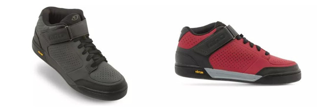 Riddance, Riddance女士款以及Riddance Mid是Giro新产品线中最为耐用的骑行鞋。它们采用Vibram Megagrip ISR橡胶外底,Giro声称这是他们骑行鞋中用过最为粘合的化合物。Rockprint增强了橡胶鞋头和鞋跟的耐用性,EVA中底设计有助于减震。而且有专为速降设计的EVA鞋垫和足弓支撑。采用超细纤维的鞋面在防水透气方面会有不错的表现。Riddance Mid还有一个魔术贴用来粘合鞋带,Riddance就没有这个设计了。43尺码的Riddance重量430g,同尺码的Riddance Mid重量445g。