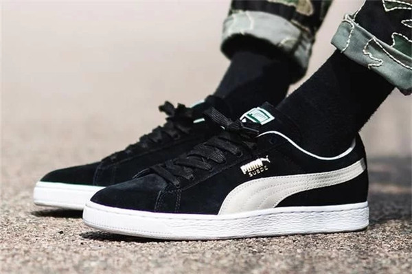 源于1968年的Puma Suede在Sneaker圈中有着重要的地位,他在时尚、音乐、舞蹈、街头文化等领域备受潮流爱好者的欢迎。黑色翻毛皮搭配米白色皮革Logo带来经典的外观,不管在什么场合穿着都不为过,西装?一样可以!