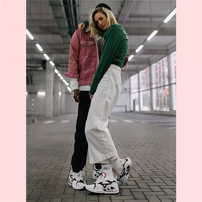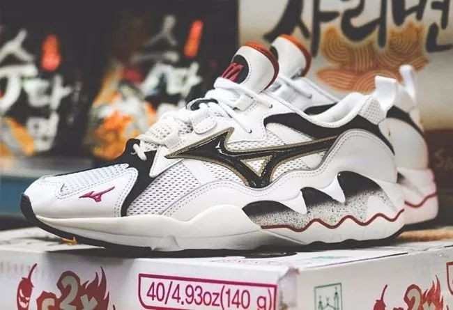 Mizuno Wave Rider 1 OG 白黑红配色在视觉效果上则更加「复古」 ,加上经典的波浪鞋底和上世纪 90 年代流行的鞋身线条勾勒,「老爹鞋」 的风范十足!