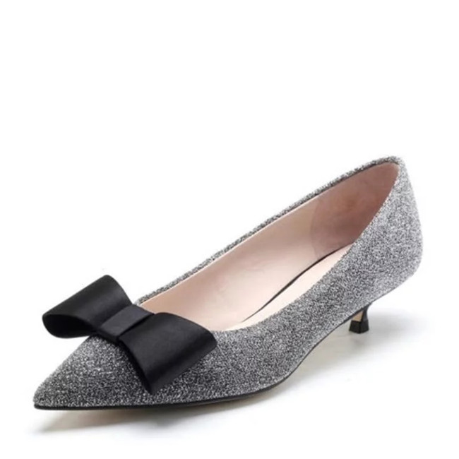 亮片布蝴蝶结猫跟鞋