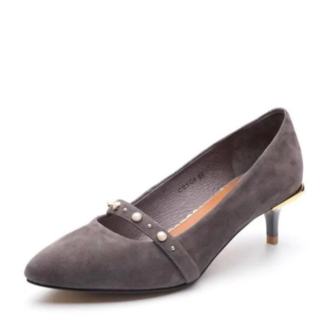 羊绒皮猫跟鞋