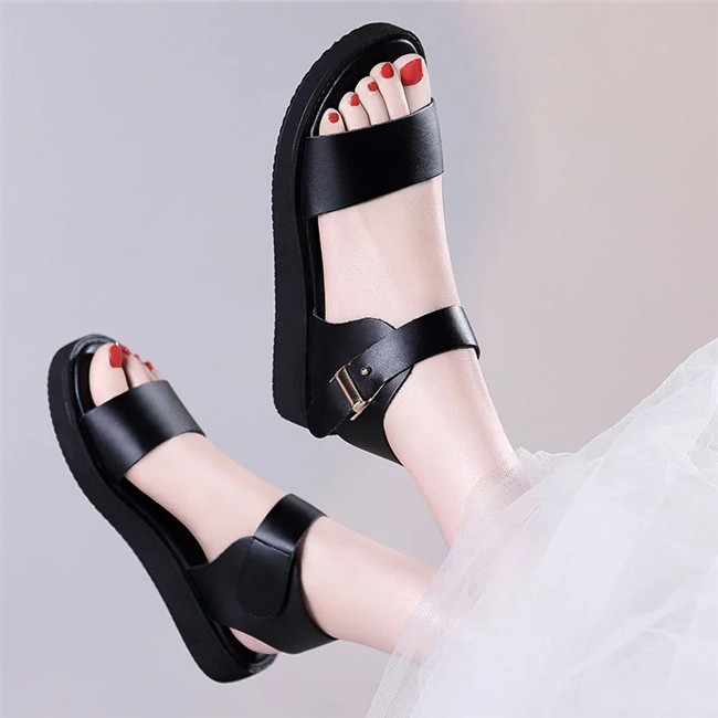 罗马凉鞋平底女夏天的天气比较炎热,所以大家一般都穿的比较清凉,这款凉鞋选用镂空的设计,所以一点都不会觉得闷热,一字带扣的设计能够很好的修饰脚型,让你的脚看起来更加秀气修长。精致的包头设计,尽显你的脚型。彩色的铆钉设计,个性时尚又有魅力。简约的粗跟设计,穿着舒适不累。