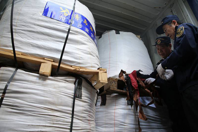 青岛海关查获34.79吨废物皮革边角料 全部退运出境