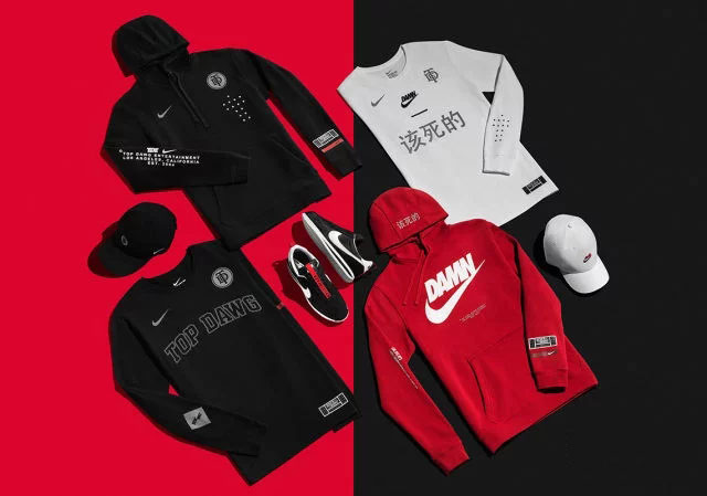 Cortez Kenny III 的设计灵感来自于 Kendrick Lamar 专辑《DAMN.》。鞋头部位保留了“该死的”中文刺绣,在鞋舌处还设计有“BET IT BACK”字样的红色织带,整体黑红白的配色十分个性。除了鞋款,还有帽衫、T恤和帽子等服饰,各服饰均以中文 「该死的」、「DAMN」以及「BET IT BACK」等字样以及 3M 反光条做装饰。