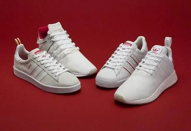 同时,这个系列不光有NMD R2,还包含EQT Support ADV,Superstar和Campus四款人气鞋型。外观设计方案相同,以纯白为基调,辅以醒目的中国红及金色妆点细节,后跟处刺绣更采用硕大的吉祥图案与 “囍” 、“福” 等文字直击主题 。也许对外国人来说是极具中国特色的鞋款,但中国人感觉确不适合日常穿着。