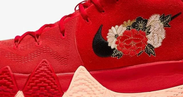 篮球鞋方面,Nike则选用一双欧文4打造“CNY”配色。鞋身以喜庆的红色作为基调,在麂皮材质的鞋帮上,精致又华丽的花卉刺绣同 Swoosh 大钩融合 。浅红色的外底,也使得节日氛围更为浓郁。同样,这双欧文4也让人觉得是外国设计师对中国风的误解。