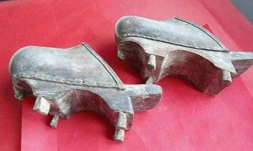 三、清代高跟拖鞋。鞋底用木板制作的,还有四个小脚,这样的鞋的品味真是太独特了,都不知道古人该如何穿。