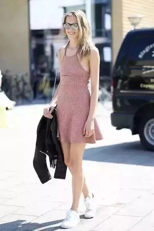 但是呢,高瘦的小仙女直接吊带裙+运动鞋可以更性感喔~