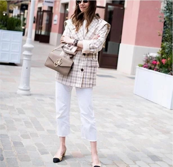 毕竟九分裤显高,百搭,还能露出纤细的脚踝,但是想要把九分裤穿时髦,你的鞋子还得穿对才好。