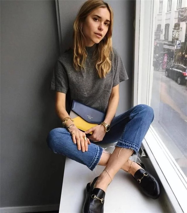 乐福鞋和九分裤的组合能轻松穿出一种范儿,简单利落又让人觉得很时髦。
