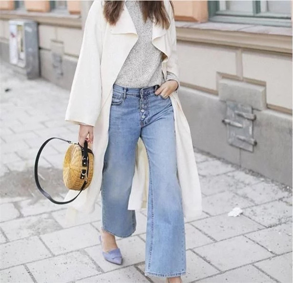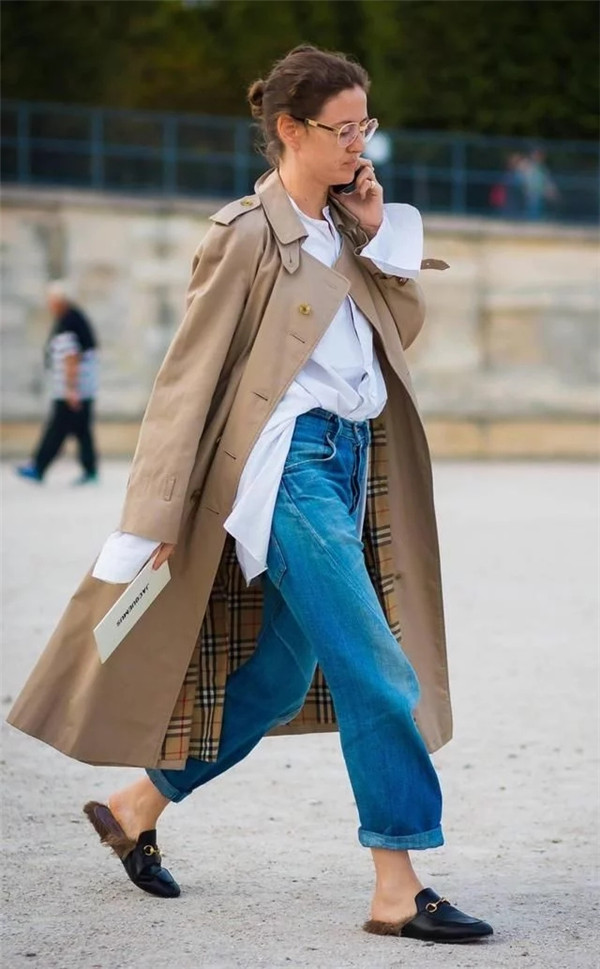乐福拖鞋搭配九分裤,还能露出纤细的脚踝,整体搭配都更显女人味。
