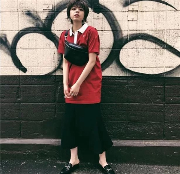 如果想显得腿更长的话,可以下装同色系搭配,一条黑色九分裤可以搭配小黑鞋。
