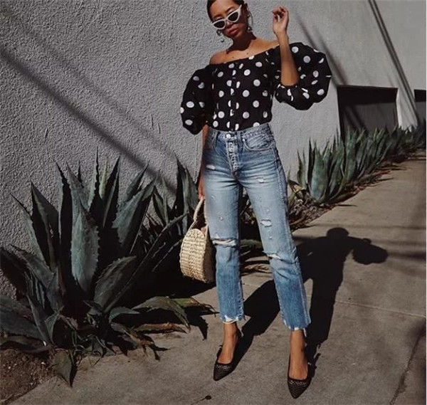 今年的猫跟鞋依然很流行,搭配九分牛仔裤,时髦有品位。