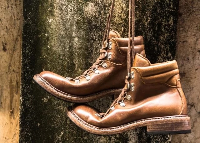 微翘鞋头下的工装靴 用做旧卡其色穿出复古的足下欧美潮!