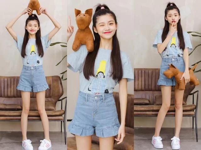 今年夏季,T恤是最受宠的一款单品,上身清爽又舒适,这件蓝色T恤,视觉上就有种清凉的既视感,俏皮卡通印花的设计,可爱感倍增哦,下装也是今期最流行的牛仔短裤,搭配运动鞋,整体LOOK显高又显腿长,小个子的你,这套必备哦,你get到了?