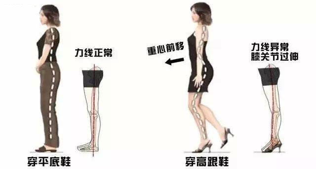 除此之外,女性在穿高跟鞋的时候,身体重心会向前。
