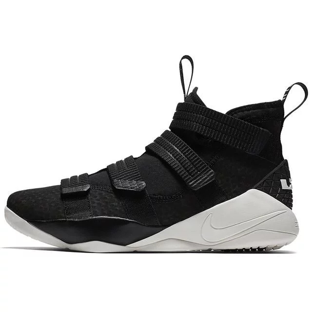 这是一款勒布朗战士11篮球鞋。鞋子颜色为黑色,鞋帮为白色,两者简约搭配,不经意间又体现着简约的品质感。鞋子耐磨性不错,在球场上高速奔跑和急停是能明显的感觉到鞋底气垫带给脚底的力量。气垫的缓震性也是可圈可点的,更难得是它的透气性,一场球打下来,脚底不会感觉闷热。最后它的保护性能好,球鞋内部脚踝两侧有塑料固定,外侧有防侧方翻设计,有效防止脚踝扭伤。鞋子整体属于偏瘦设计,初次穿着会磨脚,尤其是小脚趾,这也是篮球鞋的特点,时间久了,就不会磨脚了。