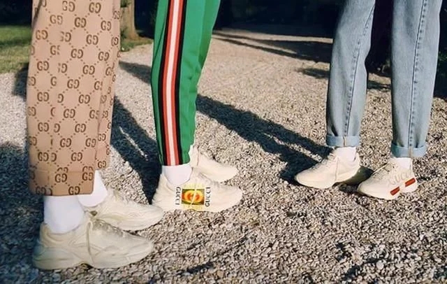不同其他的撞色系列的老爹鞋,Gucci早春推出用旧的白色作为主打的Rhytn系列老爹鞋。以文艺复兴为灵感,融入当代青年文化的个性元素,彰显米开理独特的美学理念,让这款透着犀利脏的小叛逆老爹鞋登上台面。