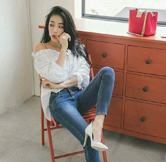 牛仔裤与尖头高跟鞋搭配 很显时尚气质和女神的清纯美感