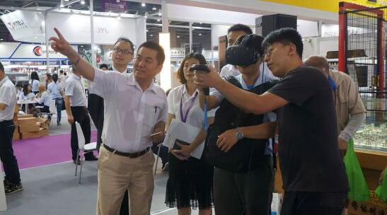 为了让观众更好地体验智能化、自动化鞋机的魅力,意利科技搭建3D鞋厂场景。观众戴上VR眼镜,就可以身临其境,看到未来5年后的鞋厂,从开发、包装到生产线的细节,以及整体工厂,都可以近距离感受。