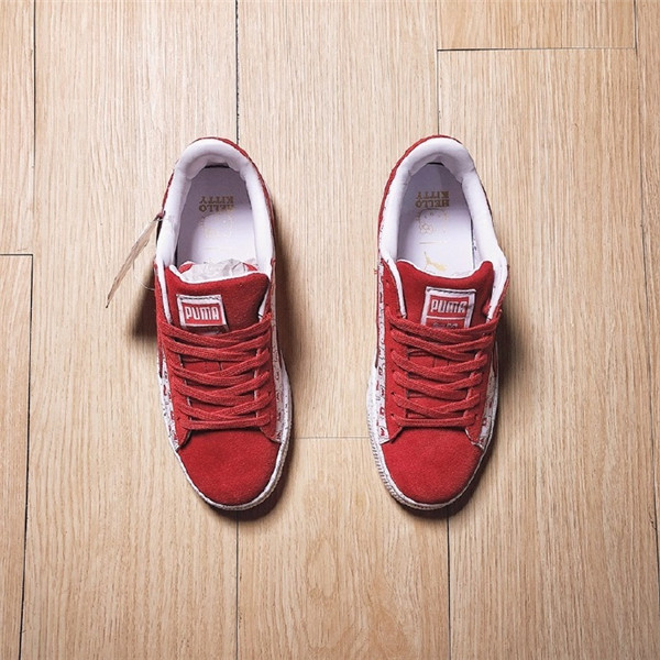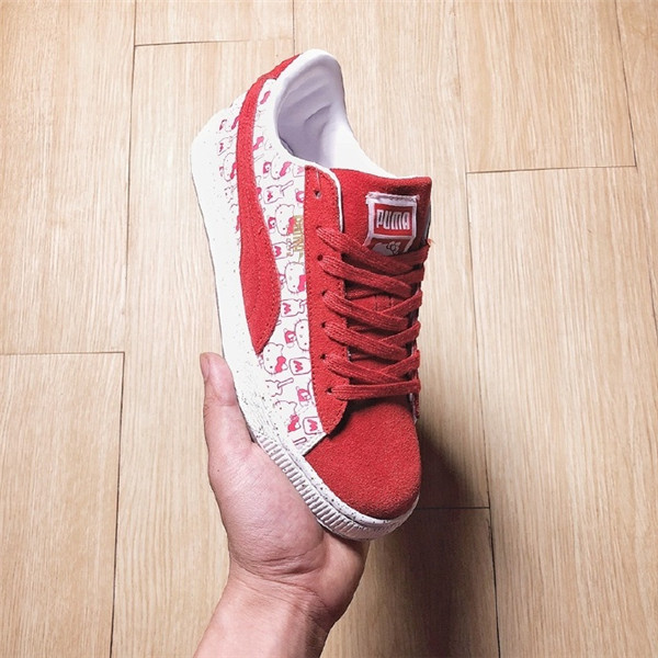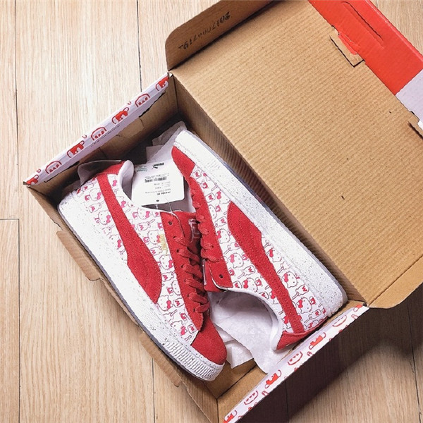 【-品牌观察】Puma x hello kitty 超甜联名 本次选用 PUMA 经典鞋型 PUMA Suede 为设计蓝本,采用白红双色装扮为主题呈现,鞋身及鞋舌上均印有 Hello Kitty 可爱的卡通图案,并在鞋底缀有