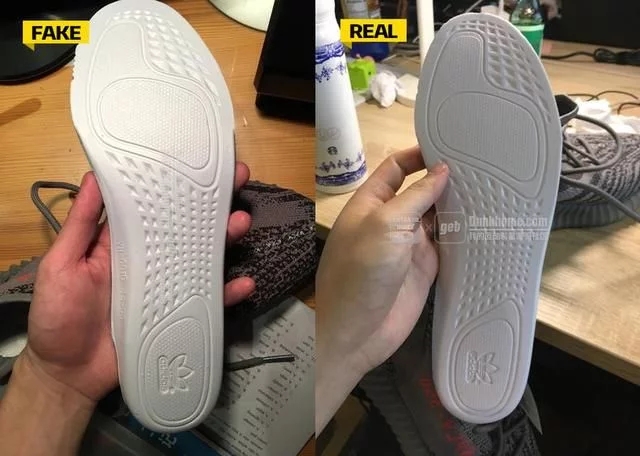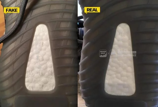 ①真鞋的BOOST颗粒感十足,而且非常饱满,立体条纹明显且基本相同。假鞋BOOST的颗粒感和刻线并不明显,甚至还出现了方向不一的情况。