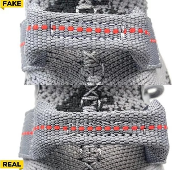 脚后跟鞋提方面,真鞋的鞋提更挺拔,然后鞋提上的车线很工整而且比较隐蔽,假鞋的鞋提则是有点松垮,车线做工不是很工整,而且线很明显。