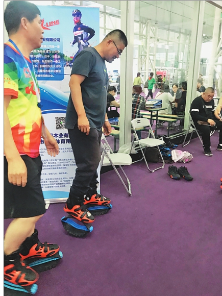 大家试穿“梨形”跑步鞋兴趣盎然。