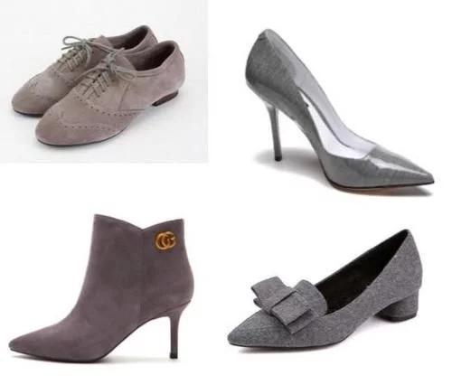 2、除了和腿部很好的相容的裸色和黑色,推荐最能和服饰单配融合的颜色,灰色鞋子,无论和什么衣服搭配它都能低调从容 很好地和大家相处