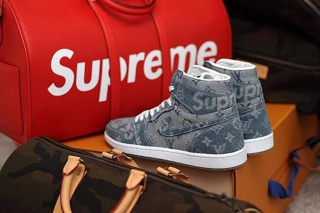此前,也有各路大神玩家为自己打造定制版球鞋,当你还在为心动已久的supreme攒钱是,人家早就把早自己的正版LV xsupreme联名款剪碎,与喜爱的球鞋融为一体,别说羡慕,给你剪刀,你可能都不敢下手。