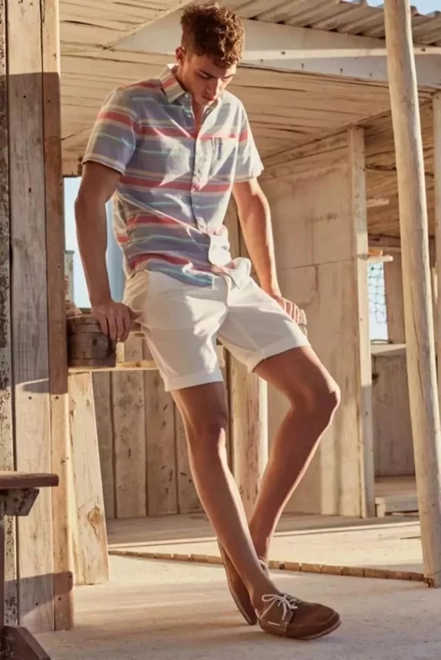▲昨天就介绍过许多百慕大短裤的穿法,今天将帆船鞋列入搭配中,造型更有质感了。